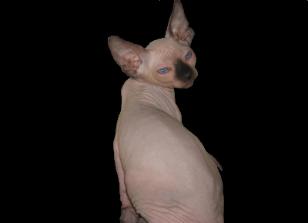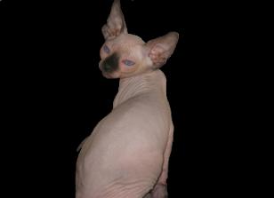 Welcome to the wonderful world of the hairless cat! The Sphynx cat is very unique and has a personality that supersedes that of any other cat. It is often said that the Sphynx is part cat, part dog, part monkey and part child. Most people who have met a Sphynx agree with that description. Leaving independence at the door, they are true "people cats". The Sphynx temperament is sweet, affectionate, mischievous and playful; wanting as much attention as you can give them. Although to look at the Sphynx, you would think no hair means maintenance free, these cats do require time and effort to keep them clean and healthy. The appearance of hairlessness differs with each cat and depends on the quality of that specific cat/kitten. |